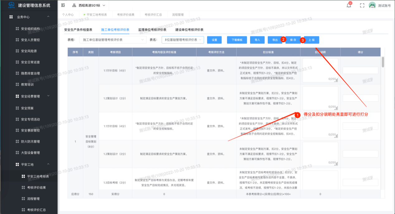 选择平安工地考核表功能,根据相应表格类型导入相应评价表格模板。为后续表格填报提供模板内容
